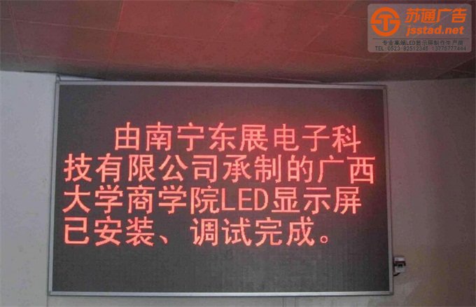 【公司簡介】:江蘇蘇通廣告主要經(jīng)營顯示屏,單色顯示屏,雙色顯示屏,全彩顯示屏,叫號屏等多種種類的一家泰州顯示屏制作公司,江蘇范圍內(nèi)可送貨上門,幫您鋪設(shè),大大節(jié)省了您寶貴的時間,蘇通廣告華東地區(qū)權(quán)威的廣告系統(tǒng)整合服務(wù)商,專業(yè)值得信賴。詳情請咨詢電話:0523-82512345。
