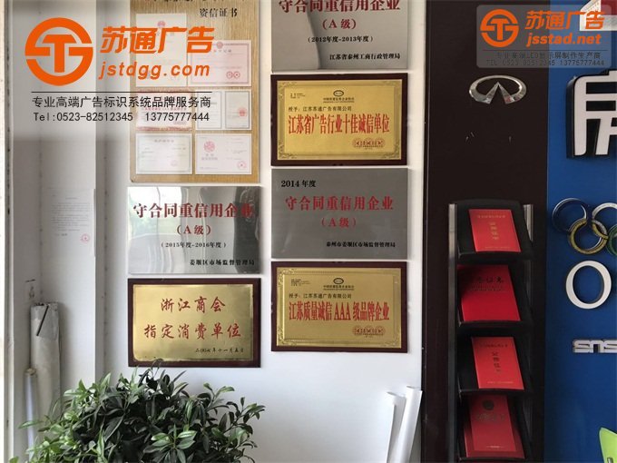 近年來(lái),在蘇通廣告各部門(mén)的共同努力,各客戶的廣泛支持下,不斷進(jìn)步,圍繞蘇通品牌,用誠(chéng)信和實(shí)力打造了屬于我們的影響力,構(gòu)建了美好的藍(lán)圖,以高度的企業(yè)榮譽(yù)感和為客戶盡心盡力服務(wù)的精神,在廣告公司激烈的競(jìng)爭(zhēng)中站穩(wěn)了腳跟,同時(shí)還被各級(jí)政府頒發(fā)了不少榮譽(yù)。這些榮譽(yù)見(jiàn)證了蘇通廣告的成長(zhǎng)與進(jìn)步。
