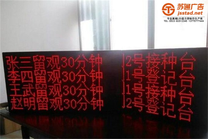 息,由一個(gè)個(gè)小的LED模塊面板組成,一般用于醫(yī)院,銀行,車站等地點(diǎn)。